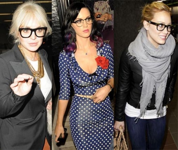 De asemenea, vedete precum Justin Bieber, Jennifer Aniston, Sandra Bullock, Ryan Gosling, Katy Perry, Johnny Depp si altii au fost vazuti purtand ochelari XXL cu rama neagra sau transparenta.