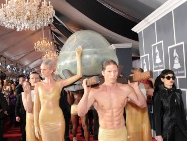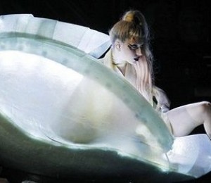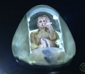 Daca artista nu si-a gasit tinuta potrivita pentru a impresiona publicul, atunci aceasta a decis ca ar putea sa capteze privirilor prin ambalaj. Astfel, Gaga a fost transportata intr-un ou, care se asemana cu un elicopter.