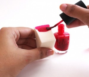 Ai nevoie de: oja neagra, oja rosie, lac de unghii, burete pentru aplicarea fondului de ten.
