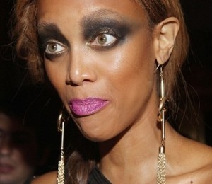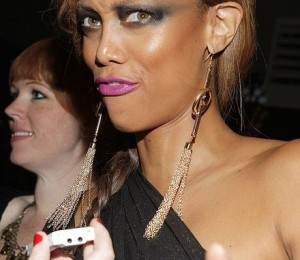 Modelul in varsta de 38 de ani avea un machiaj indraznet, stil smokey care era cu adevarat exagerat, iar efectul dezastruos a fost inevitabil. Fardul de culoare inchisa se intindea pana la sprancene si pana spre tample si, ca si cum nu ar fi fost de ajuns, Tyra a optat si pentru un ruj intr-o nunata de roz neon.