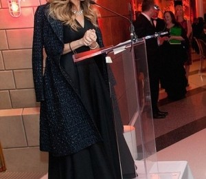 Actria a fost prezenta vineri seara la un eveniment monden Chicago si a impresionat pe toata lumea cu o rochie spectaculoasa semnata Oscar de la Renta peste care purta un palton. Char si in timpul discursului a pastrat haina pe umeri.