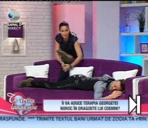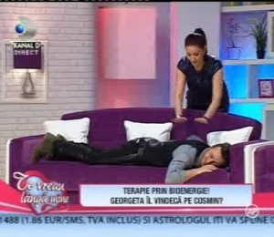 In timp ce o doamna invitata in platoul emisiunii de ieri a facut o demonstratie de terapie prin bioenergie, Gabriela Cristea i-a oferit lui Tavi o astfel de "sedinta" in direct.