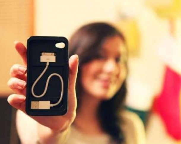 O astfel de husa are un mic incarcator atasat, cu care iti poti conecta telefonul la laptop atunci cand ai nevoie urgenta de baterie.