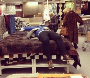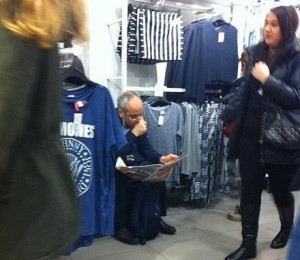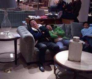 De la cei care asteapta resemnati si rezemati pe balustrada din fata magazinului, pana la cei care se culcusesc pe un scaun dintr-o cabina de proba sau adorm pe fotoliul folosit ca mobilier de decor in magazin, sunt sigura ca toti iti vor frange inima.