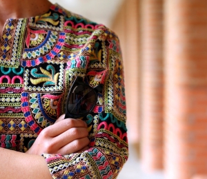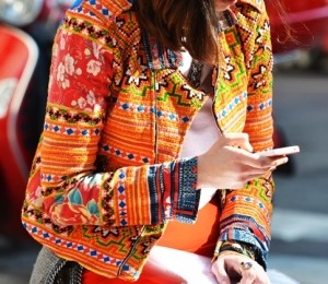 Jacheta cu imprimeuri etnice - imprimeurile colorate, de inspiraţie etnică, rămân încă în tendinţe. Acestea se poartă pe bluze, fuste şi genţi, însă dacă vrei să dai lovitura trebuie să ai în garderobă o jachetă cu imprimeuri etnice.