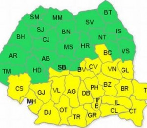 Cod galben de precipitatii insemnate cantitativ, polei si vant puternic, miercuri si joi
