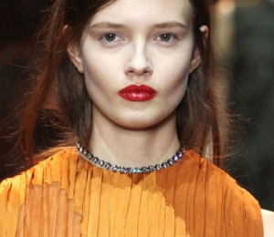 În materie de make-up, rujul roşu este cel care face furori în această primăvară. Cu toate că nuanţele nude au fost pe val în ultimul rimp, rujul roşu îşi reia locul în topul preferinţelor make-up asrtiştilor. Nina Ricci a mizat pe un ruj roşu lucios, în combinaţie cu un ten matifiat, perfect alb, în timp ce DKNY şi Celine au ales rujul roşu mat.