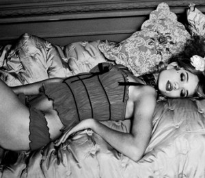 Femeia sta lungita pe o parte, in pat, in timp ce partenerul sau sta in spatele sau, lungit in acelasi fel.