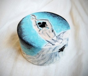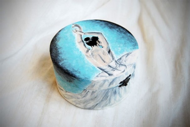 In general cam tot ce se poate picta si/sau decora/personaliza prin diverse tehnici. Creez bijuterii – cercei, coliere, bratari, agrafe, brose, inele –, cutii pentru bijuterii, rame pentru fotografii, suporturi pentru betisoare, pictez pe tricouri sau pe orice alte suporturi textile.