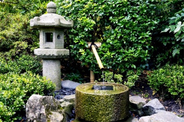 Apa: in Japonia ploua foarte mult, deci nu este o surpriza faptul ca apa face parte din gradina. Sunetul apei aminteste de trecerea timpului.