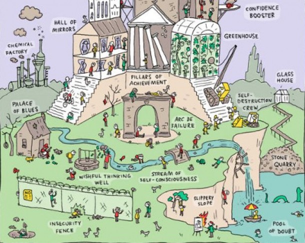 Grant Snider de la Incidental Comics ne prezinta o harta foarte utila (si foarte la indemana) a complexului numit inferioritate. Reprezentarea pe care o face artistul este un lucru foarte bun pe care il face, deoarece complexul de inferioritate este un teritoriu vast, unde nu este usor sa navighezi.