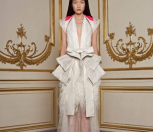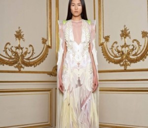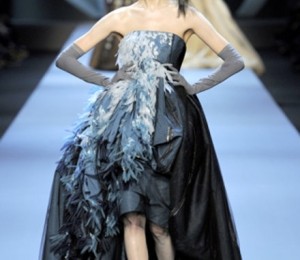 Ultima data cand Riccardo Tischi a prezentat o colectie couture pentru Givenchy, designul fermoarelor era creat de un schelet. Sezonul acesta, Tisci a optat pentru aripi. Favoritul stilului goth din moda are o noua obsesie: Japonia. Nu, nu de taramul geishelor si obisului, ci de Japonia robotilor si a dansatorului Kazuo Ohno, care crea un ritual intens al interpretarii. Conform lui Tisci, Ohno a fost inspiratia pentru alegerea culorilor, care reflecta romantismul si melancolia artistului, iar robotii au influentat aplicatiile, pantofii si palariile mari create de Philip Treacy. Pentru fiecare tinuta au fost necesare 2000 de ore pentru taieturi si 4000 de ore pentru cusut. La acest nivel, aprecierea hainelor e solemna.