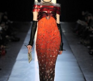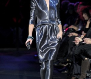 Inspirat de stralucirea pietrelor pretioase, Armani a creat o colectie care pare provenita de pe o alta planeta. Aceeasi planeta de unde s-a inspirat Pierre Cardin si Thierry Mugler. Texturi ca mercurul, efecte metalice si la nivelul accesoriilor, evidentierea siluetei si nuante puternice, au format colectia SF Armani Prive.