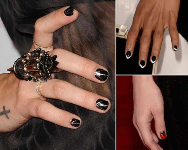 Modelele inedite pe unghii sunt deja la ordinea zilei atunci cand vorbim despre covorul rosu, iar la ultimele evenimente am vazut din ce in ce mai des modele geometrice.
