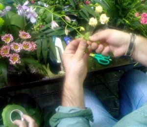 Nu degeaba ai ales patru flori? Acum e vremea sa le punem pe cele care au ramas. Ti-aduci aminte ca acestea trebuiau curatate de boboci, dar trebuia sa lasi cativa in varf. Taie-le pe toate la aceeasi lungime, cu varfurile ascutite.