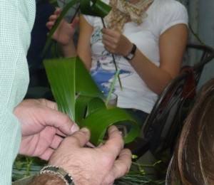 Despica apoi frunza pana la varf. Vei forma astfel doua urechiuse pe care va trebui sa le impletesti. Si iata cum faci acest lucru: