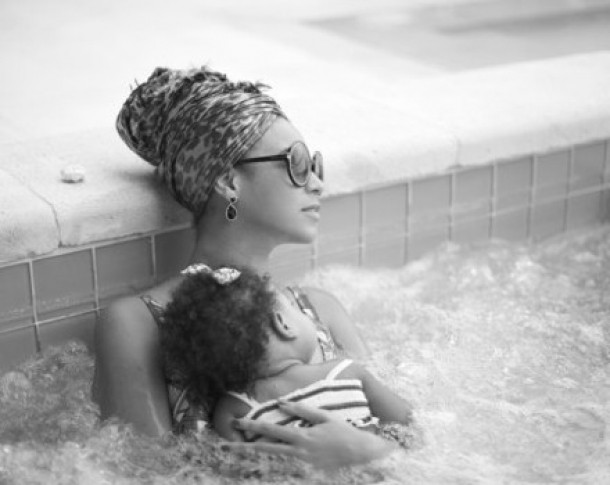 Pentru a-si tine fanii la curent, Beyonce a postat pe contul de Tumblr o fotografie in care apare in jacuzzi, alaturi de micuta Blue Ivy, care doarme linistita la pieptul mamei.