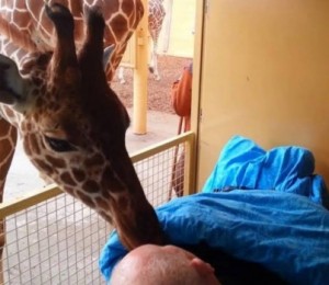 FOTO! Girafa isi ia la revedere de la ingrijitorul ei care e pe moarte