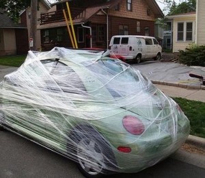 Iubitul tau este mereu grabit atunci cand pleaca la serviciu? Ei bine, intarzie-i plecarea, infasurandu-i toata masina in folie alimentara. Il va scoate din minti, insa vei aduce zambetul pe buze tuturor vecinilor si oamenilor care trec pe strada si il vad incercand cu disperare sa rupa folia.