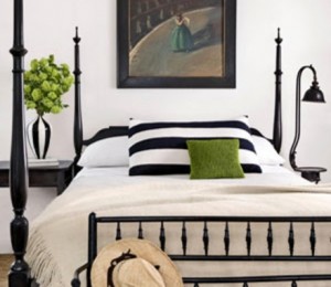 Contrastul puternic pe care il creeaza albul si negru imbina stilul contemporan cu cel clasic intr-un mod deosebit. O paleta monocromatica merge asortata cu mici accente de culoare (verde, rosu) pe diferitele elemente ale camerei (perne, taburete, rame).