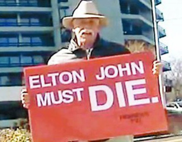 Declaratia artistului britanic l-a scos din minti pe americanul Neal Horsley, in varsta de 65 de ani, care s-a filmat cu un panou pe care scria "Elton John trebuie sa moara", in fata unei cladiri de lux din Atlanta, in care cantaretul detine un apartament.