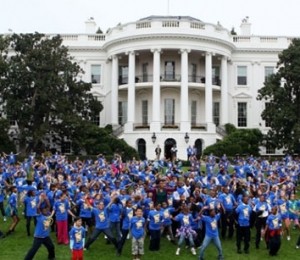 Foto! Sport la Casa Alba - Michelle Obama a sarit alaturi de 400 de copii