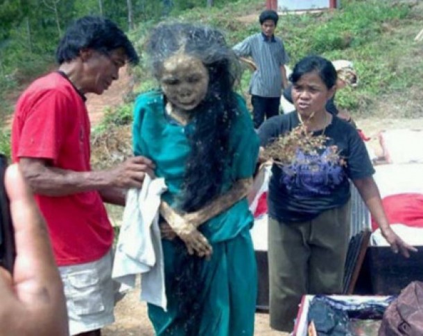 Acest ritual are la origini credinta ca spiritul persoanei decedate trebuie sa se intoarca in sat. In timpul ceremoniei, localnicii isi plimba stramosii iubiti prin sat, tinandu-i drepti.