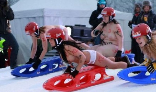 Concurentii au purtat doar lenjerie intima si cate o casca pentru a nu se lovi la cap.