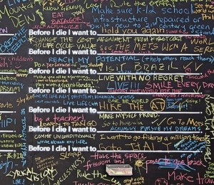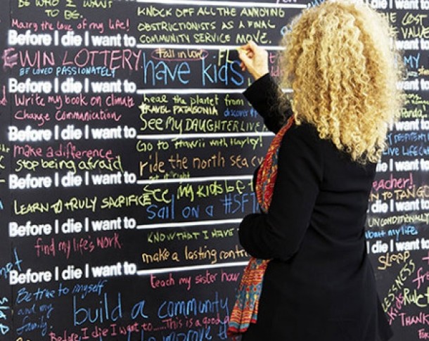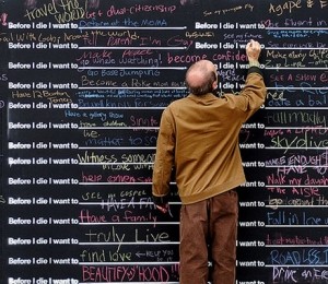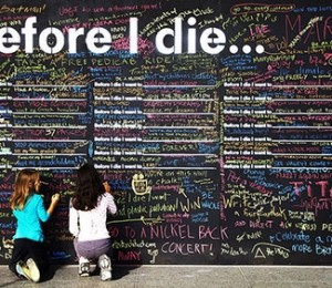 Exista si o carte care inglobeaza unele dintre cele mai surprinzatoare ganduri ale unor oameni din Alaska si pana in Australia. Raspunsul la intrebarea ce vor oamenii sa faca pana cand parasesc aceasta lume variaza de la “sa apuc un an fara razboi” si pana la “sa fac dragoste cu un interpret la harpa” sau “sa imi repar inima franta”. Cartea contine si fotografii cu panouri din intreaga lume si povestile catorva dintre cei care nu au tinut sa isi pastreze anonimatul.