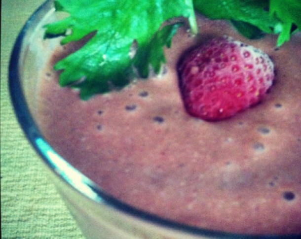 Ai nevoie de: o cana salata verde, 1 cana de lapte de cocos, 1 cana de capsune congelate, cateva frunze de menta proaspata, zeama de la un lime.