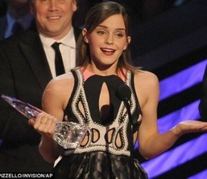 Emma, in varsta de 22 de ani, a purtat o rochie inedita, extrem de scurta, semnata Peter Pilotto. Tinuta imbina imprimeurile alb negru, in partea de sus, cu cele color in partea de jos.