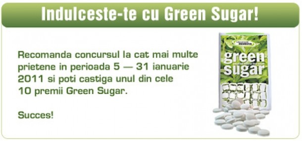 Green sugar este un brand lansat de Laboratoarele Remedia si care defineste un nou indulcitor natural, vegetal, mai exact un extract de stevie. Stevia care este capabila sa produca acest indulcitor se numeste Stevia Rebaudiana, originara din America Centrala si de Sud dar astazi este cultivata si in China, Tailanda, Singapore, Malaezia si Vietman.