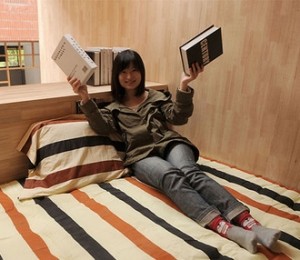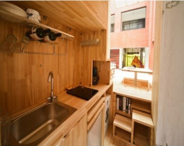 In aceste casute incape pana si masina de spalat. In plus, ai la dispozitie rafturi pentru carti si o saltea in loc de podea. Este practic locul perfect in care sa te relaxezi si sa citesti.