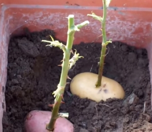 Pentru a planta cu succes trandafiri, ai nevoie de: trandafiri, cartofi, sticle goale de apă, apă, pământ, ghiveci.