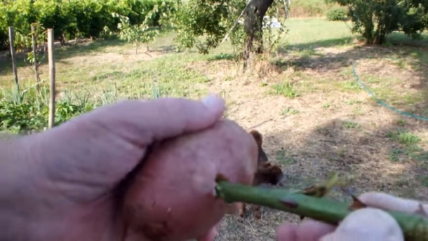 2. Fă apoi o gaură într-un cartof, astfel încât să încapă tulpina trandafirului.