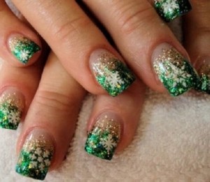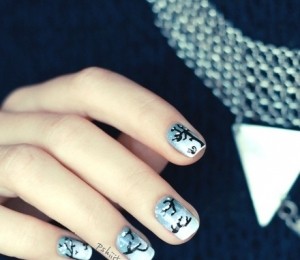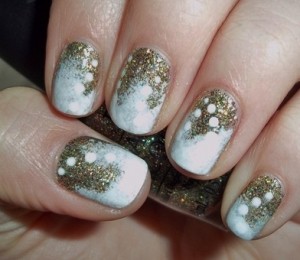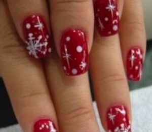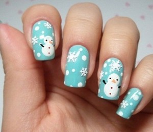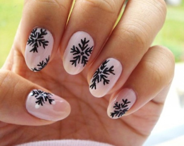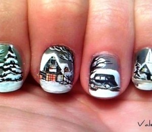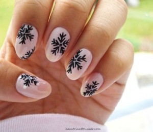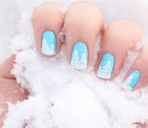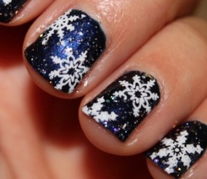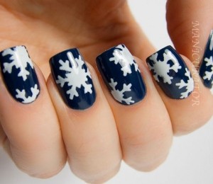 Daca te ocupi singura de manichiura ta, alege un model simplu si usor de realizat, cum este cel pe fond albastru cu fulgi albi. Te-am invatat aici cum sa iti faci o astfel de manichiura.