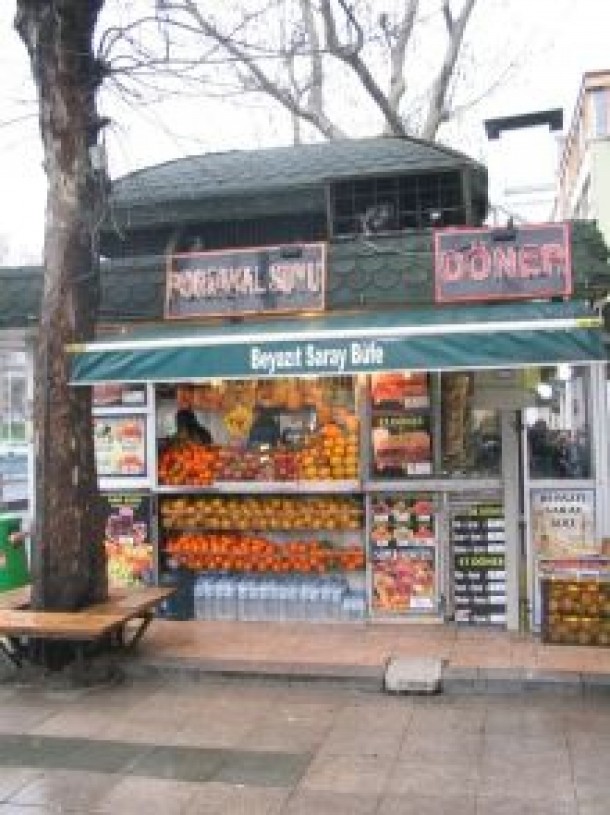 - Nu te feri de mancarea preparata si servita la tonetele din strada sau in bazar. Gustoasa si accesibila, nu are timp sa se altereze sau sa se invecheasca. De la castane coapte la porumb fiert, copt sau boabe rumenite in unt cu condimente, de la vestitul (si absolut delicioasul!) ayran (iaurt de capra, indoit cu apa si imbogatit cu mirodenii) pana la legendarul donner kebab din carne de miel, gasesti de toate...chiar si hamsii tavalite in malai si prajite! In plus, magazinasele alimentare iti ofera, la preturi modice, o mare varietate de salamuri crude autentice, de tipul ghiuden, babik sau sugiuk.