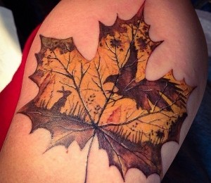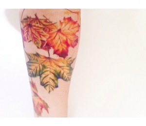 Frunzele sunt reprezentative pentru acest sezon aşa că poţi alege un tatuaj cu forma unei frunze. Varianta alb-negru este interesantă, însă varianta colorată este foarte aproape de realitate.