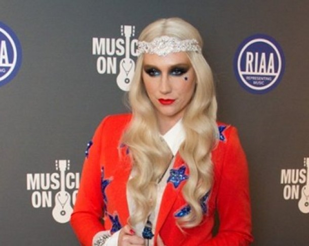 Astfel, la sustinerea unui concert caritabil, Ke$ha a imbracat un outfit in stilul caracteristic, un costum rosu cu stelute albastre pe sacou si o camasa alba. Si-a completat tinuta cu accesorii albastre. o pereche de pantofi si bijuterii, iar machiajul a fost si el realizat intr-un stil ostentativ, cu fard sidefat albastru si ruj rosu si tenul foarte alb.