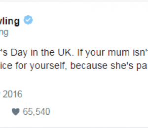 "Astăzi e Ziua Mamei în Marea Britanie. Dacă mama ta nu e aici, fă ceva drăguţ pentru tine căci ea e o parte din tine", a scris J.K. Rowling pe Twitter.