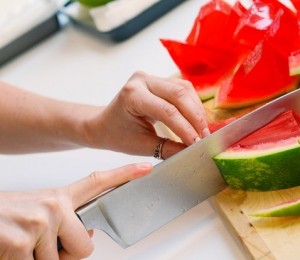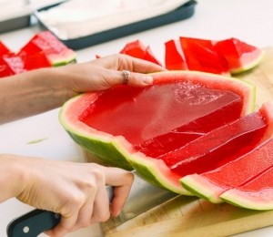5. Când se întăreşte jeleul, taie pepenele în porţii egale şi lasă-ţi prietenii să savureze bunătatea de desert.