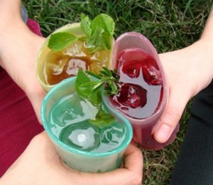 Acestea se numesc Jelloware, si dupa cum  sugereaza si numele, sunt facute dintr-un jeleu aromat, mai consistent decat cel obisnuit, astfel incat sa se poata pune bautura in el fara a curge, iar apoi se  poate consuma pe post de desert.