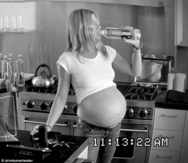 Actrita in varsta de 43 de ani are o colaborare indelungata cu un brand renumit de apa si face haz de stilul de viata al celebritatilor. Potrivit povestii din spatele noului spot publicitar, Jennifer este insarcinata cu tripleti si este deja mama a doi copii.