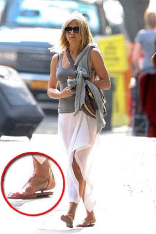 In timp ca facea o plimbare prin New York, vedeta a fost pozata cu noul tatuaj care iesea in evidenta printre beretele sandalei pe care o purta.