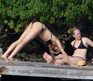 Cameron Diaz face yoga in bikini