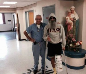 Asadar, barbatul si-a facut o multime de fotografii, care mai de care mai amuzante, in care mima amputarea piciorului, dar si un tatuaj prin care le indica medicilor locul in care trebuie sa taie.