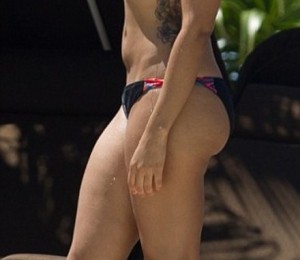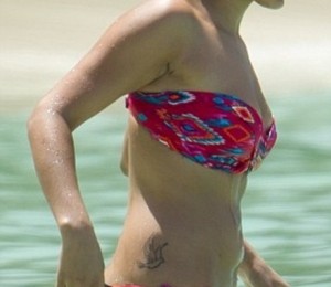 Jordin a fost vazuta purtand pe plaja un costum de baie minuscul, din doua piese, care ii lasa la vedere conditia fizica impecabila.