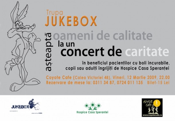 Trupa Jukebox ne promite o seara "memorabila" in Coyote Cafe, sponsorul principal al evenimentului. Joi, 12 martie 2009, membrii trupei te asteapta la Coyote Cafe, incepand cu ora 22.00, la un concert sub deviza "Traieste Viata si bucura-te de fiecare clipa!"