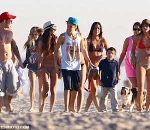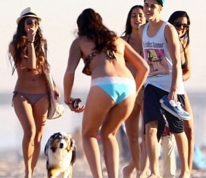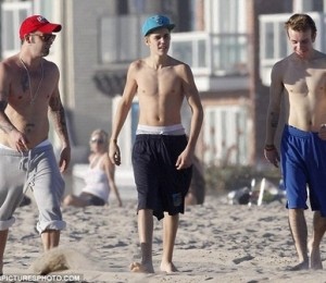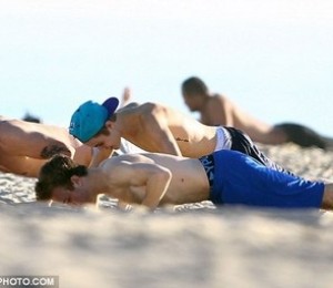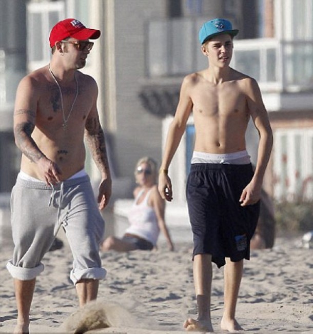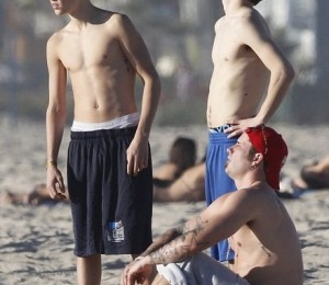 Cei doi au facut niste exercitii, s-au jucat, iar artistul a stat sa faca si cateva poze cu niste fani. Alaturi de Justin si de tatal cantaretului se mai afla si un prieten de-al sau, care a facut exercitii impreuna cu cei doi.