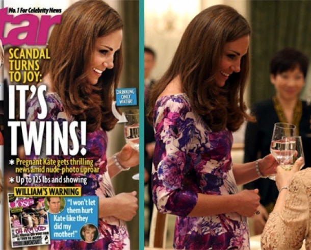 La doar o saptamana, o alta stire confirma faptul ca Ducesa de Cambridge ar urma sa nasca gemeni. Un presupus prieten al familiei este citat in paginile revistei, sustinand ca aceasta a facut un test de sarcina si ca nivelul hormonilor arata ca este pe cale sa dea nastere unor gemeni.